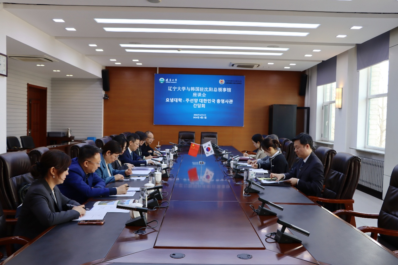 会上,双方参会人员围绕高校间的学术交流与合作、人才培养方向等进行了深入交流。韩国驻沈阳总领事馆经济领事孙彰浩、领事崔容珍;辽宁大学社会科学研究处处长李艳枝、国际经济政治学院院长刘文革、经济学部副主任董保民、经济学部办公室主任孔晓,以及相关人员参加座谈。