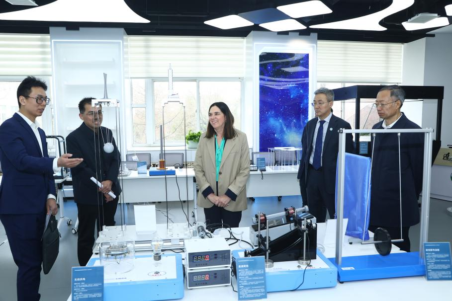 Katie Normington一行先后参观了辽宁大学人才培养科学研究社会服务一站式社区、文科综合实验中心、场景作用机理实验室、“场景·问题·创新实验室”等,详细了解了辽宁大学在推进教育科技人才一体化方面的实践探索,场景作用机理实验室的基本原理等。
